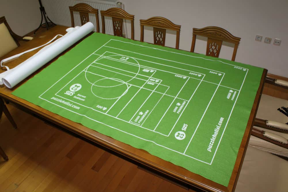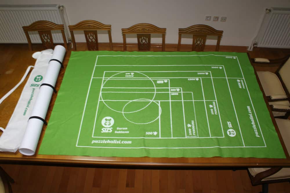 Üzerindeki referans çizgiler evrensel boyutlarla uyumludur: 500 – 850 & 1000 – 1500 – 2000 – 3000 – 4000 1000 Panaroma – 1000 Özel / Exlusive Panaroma 4000 Panaroma 570 Yuvarlak Saat – 850 Ayna Puzzle Halısı 4000’lik Boyutu: 110cm x 185cm dir. Bu Ürün 4000 parçaya kadar tüm puzzle boyutları için uygundur. Farklı boyutta ürünleri belli boyutlardan daha büyük puzzlelar ile ilgilenmeyen müşterilerimize seçim imkanı vermek, fiyat ve yerden tasarruf etmelerini sağlamak için ürettik. Paket 1 adet puzzle halısı, 1 adet sarma rulosu, 4 adet kilitli lastik ve 1 adet kamboç çanta içermektedir. Siparişler en geç 1 iş günü içerisinde MNG hızlı kargoya teslim edilir. Kargo ücretsizdir.;